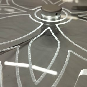 Для изготовления табличек-акрилайтов такие дистанционные держатели — идеальное решение. Цвет серебрянный, толщина стекла до 12 мм устойчиво. Яркости светодиодов кольца хватает для «пробития луча» до 30 см. Так что такие решения можно применять для табличек на двух держателях.